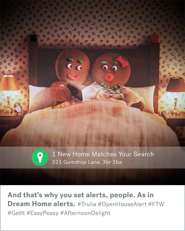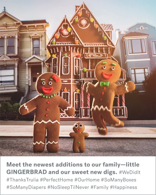 After a successful series of comedic spots for Trulia, they asked our team at Mekanism to handle a series of holiday posts featuring a gingerbread family looking for a house.